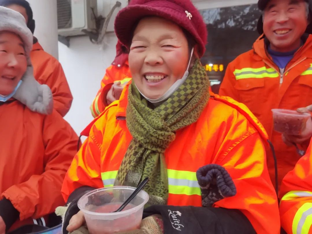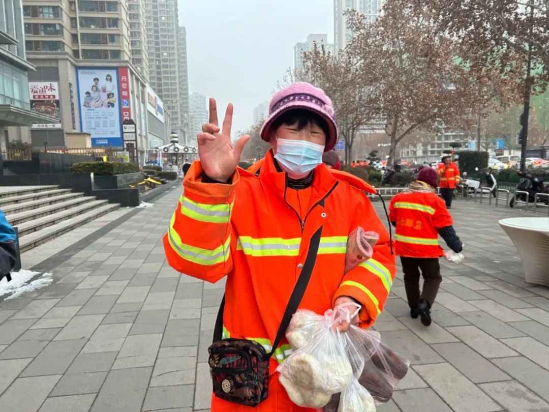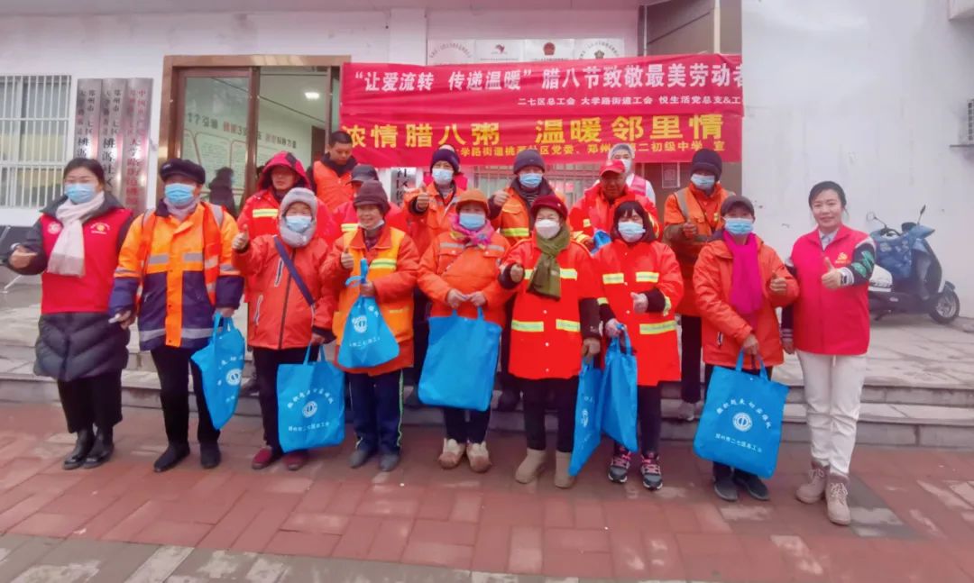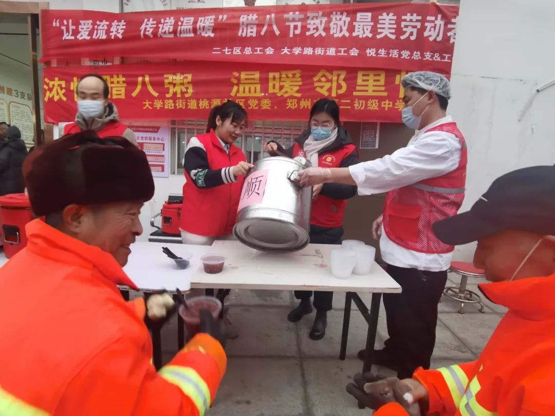 為二七區(qū)的環(huán)衛(wèi)工人們送上熱粥和手套