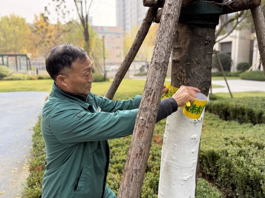 冬季的戶外器材設(shè)施和單元樓大堂門、入戶門把手常常因低溫變得冰冷刺骨,給業(yè)主的日常使用帶來(lái)不便。為了消除這一困擾,康橋悅生活為戶外器材設(shè)施加裝了保暖套,保障設(shè)備在寒冷天氣正常運(yùn)行;同時(shí)為單元樓的大堂門及業(yè)主的入戶門加裝了門把手套,并貼心的配上溫馨提示,讓業(yè)主在觸摸時(shí)不再感到冰冷;更是為室外的樹(shù)木刷上防寒白漆,讓綠意在寒冬也能生機(jī)勃勃。